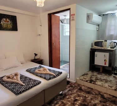 Espaço acolhedor para Quatro pessoas, camas confortáveis e decoração simples que faz você se sentir em casa.
